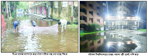 এবছরের বর্ষার বিগত কয়েকদিনে দুই ক্যাম্পাসের চিত্রে দেখা গেছে, সরকারি ব্রজমোহন (বিএম) কলেজ : বৃষ্টিতে কলেজের প্রশাসনিক ভবন, প্রধান ফটক, মাঠ, রাস্তা এবং চারপাশের এলাকাসমূহে পানি জমে ভয়াবহ পরিস্থিতির সৃষ্টি হয়েছে। এতে হাজারো শিক্ষার্থী চরম দুর্ভোগে পড়েছেন। একাধিক শিক্ষার্থীর অভিযোগ, বর্ষা এলেই বিএম কলেজে হাটু পানি জমে থাকে। এতে শ্রেণিকক্ষে যাওয়া দুর্বিষহ হয়ে পড়ে। বিশেষ করে ছাত্রীদের জন্য এ পরিস্থিতি অত্যন্ত বিপজ্জনক ও লজ্জাজনক হয়ে দাড়ায়। স্থানীয় অভিভাবকরাও বিষয়টি নিয়ে উদ্বেগ প্রকাশ করেছেন। তাদের মতে, এত বড় একটি প্রতিষ্ঠানে এভাবে বছরের পর বছর জলাবদ্ধতা চলতে পারে না। জলাবদ্ধতার কারনে ক্যাম্পাসের চলাচলের রাস্তাগুলো প্রতিনিয়তই ক্ষতিগ্রস্থ হচ্ছে। কলেজ প্রশাসন চাইলে এটি সমাধান করা সম্ভব। এ বিষয়ে বিএম কলেজের এক কর্মকর্তা বলেন, জলাবদ্ধতা সমস্যা দীর্ঘদিনের। আমাদেরও চেষ্টা রয়েছে, তবে বড় ধরনের সংস্কারের জন্য বরাদ্দ প্রয়োজন। বিষয়টি ঊর্ধ্বতন কর্তৃপক্ষকে জানানো হয়েছে। তবে শিক্ষার্থীদের মতে, প্রতিবছর একই প্রতিশ্রুতি দিয়ে সময় পার করায় বাস্তব কোনো উন্নয়ন হচ্ছে না। তারা অবিলম্বে কলেজ প্রাঙ্গণের রাস্তা সংস্কার, সঠিক ড্রেনেজ ব্যবস্থা এবং পানি নিষ্কাশনের কার্যকর উদ্যোগ গ্রহণের দাবি জানিয়েছেন। বিএম কলেজ শুধু বরিশাল নয়, দেশের অন্যতম শ্রেষ্ঠ শিক্ষা প্রতিষ্ঠান। শিক্ষার্থীদের প্রশ্ন এই প্রতিষ্ঠানে যদি বারবার এমন দুর্ভোগ চলতে থাকে, তবে উচ্চশিক্ষার মান কোথায় গিয়ে দাড়াবে। এ বিষয়ে বিএম কলেজের অধ্যক্ষ ড. শেখ মো. তাজুল ইসলামের সাথে যোগাযোগের চেষ্টা করা হলে তাকে পাওয়া যায়নি।