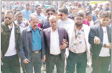 বিএনপির ভারপ্রাপ্ত চেয়ারম্যান তারেক রহমানের সংবর্ধনা অনুষ্ঠানে আনন্দ মিছিল নিয়ে যোগ দেন বরিশাল-৫ আসনে বিএনপির মনোনীত প্রার্থী এ্যাড. মজিবর রহমান সরোয়ার -পরিবর্তন।