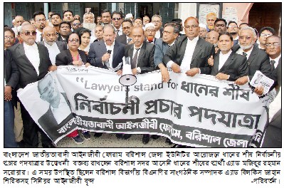 বরিশাল আদালত প্রাঙ্গনে গণসংযোগ ও মতবিনিময় করেছেন সদর আসনে ধানের শীষের প্রার্থী এ্যাডভোকেট মজিবর রহমান সরোয়ার। বুধবার বিকেল ৩টায় তিনি আদালত চত্বরে আসনে তাকে অভ্যর্থনা জানান আইনজীবীরা। এ সময় উপস্থিত ছিলেন, বিএনপির বিভাগীয় সাংগঠনিক সম্পাদক বিলকিস জাহান শিরিন, জেলা দক্ষিণ বিএনপির সদস্য সচিব আবুল কালাম শাহীন, জেলা আইনজীবী সমিতির সভাপতি অ্যাডভোকেট সাদিকুর রহমান লিংকন, সাধারণ সম্পাদক এ্যাডভোকেট মির্জা রিয়াজুল ইসলাম, জেলা জজ আদালতের পিপি আবুল কালাম আজাদ, এ্যাডভোকেট শহীদ হোসেন, মহসিন মন্টু, নাজিম উদ্দীন আলম পান্না, তছলিম উদ্দীন, আবুল কালাম আজাদ ইমন, আব্দুল মান্নান মৃধা। মজিবর রহমান সরোয়ার বলেন-আগামী নির্বাচনে ঐক্যবদ্ধভাবে বিনপিকে বিজয়ী করতে হবে। তিনি বলেন, বেগম খালেদা জিয়া দেশের জন্য জীবন উৎসর্গ করেছেন, গণতন্ত্রের জন্য লড়াই করেছেন। তার এই আপসহীন নেতৃত্বের কারণেই আজকে গণতন্ত্রের পথে যাত্রা শুরু হয়েছে।